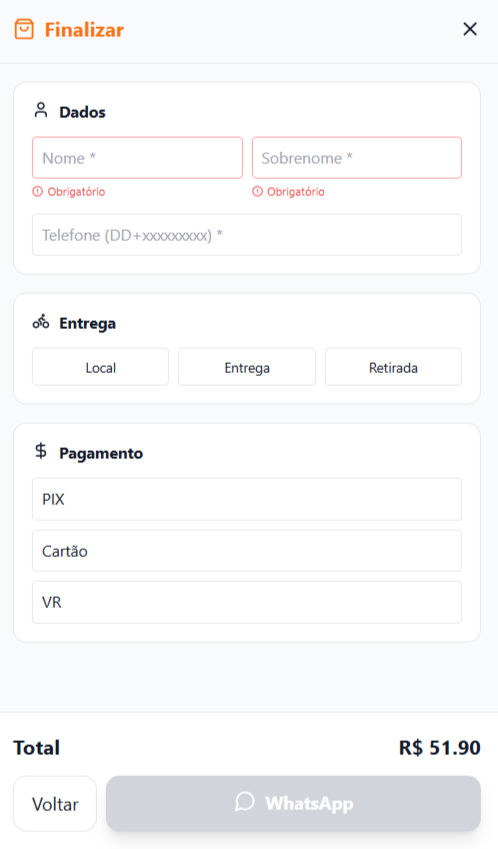 E é encaminhado todo pedido detalhado para o whatsapp do Restaurante